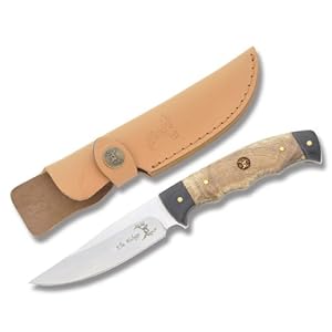 Vendor: 8.5'' Overall 440 Stainless Steel Blade Burl Wood Handle with Elk Medallion Includes Genuine Leather Sheath