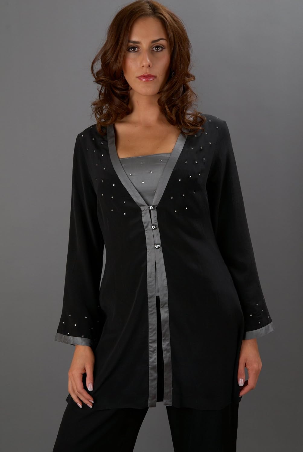 Product Description : Classic Silk Crepe-de-chine Jacket adorned with Swarovski crystals - let the evenings sparkle